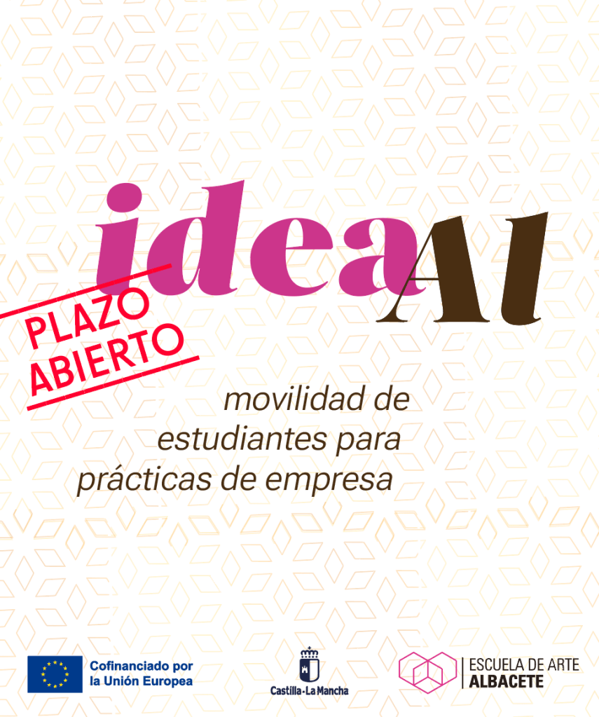 Se publican las bases que regulan, para el curso académico 2024-2025, la forma de acceso del alumnado de la Escuela de Arte Albacete al Programa ERASMUS+ – KA131-HED – Convocatoria 2024 Ronda 1, titulado Internacionalización de la Escuela de Arte Albacete (IDEAAL) y concedido a esta entidad por la Agencia Nacional Española, Servicio Español para la internacionalización de la educación, para la Movilidad de Estudiantes para Prácticas, correspondientes a la Formación en Centros de Trabajo (FCT) deCiclos Formativos de Grado Superior.