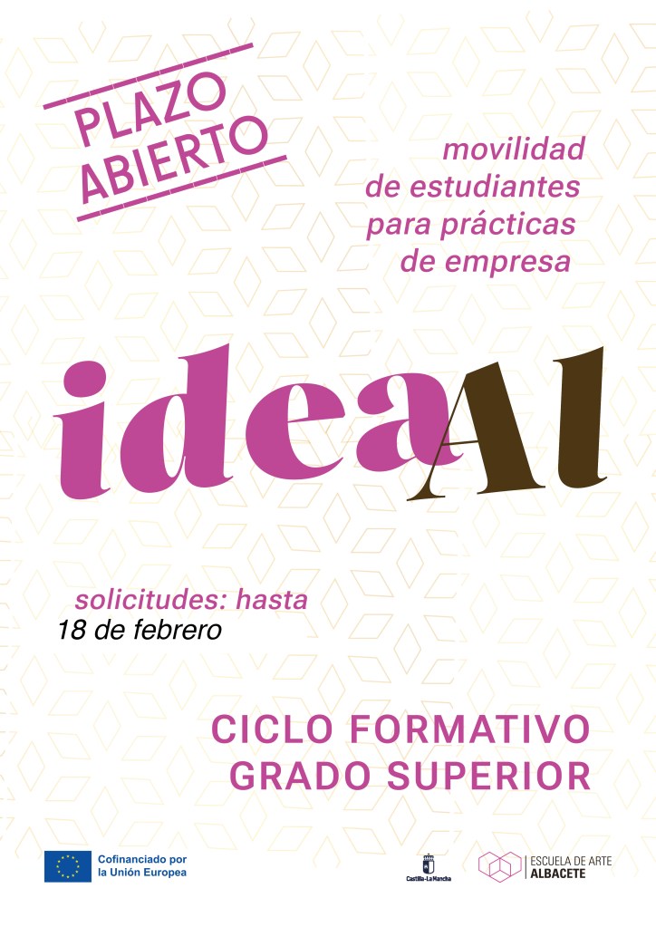 Abierta la convocatoria de movilidad de estudiantes para prácticas de ciclos formativos de Grado Superior de la Escuela de Arte Albacete para solicitar la movilidad de estudiantes para prácticas, correspondientes a la Formación en Centros de Trabajo (FCT).