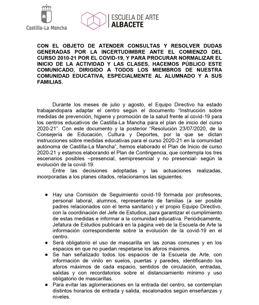 Información COVID-19_inicio de curso Para descargar la carta informativa redactada por el Equipo Directivo pincha aquí Comparte esto: Compartir en X (Se abre en una ventana nueva) X Comparte en Facebook (Se abre en una ventana nueva) Facebook